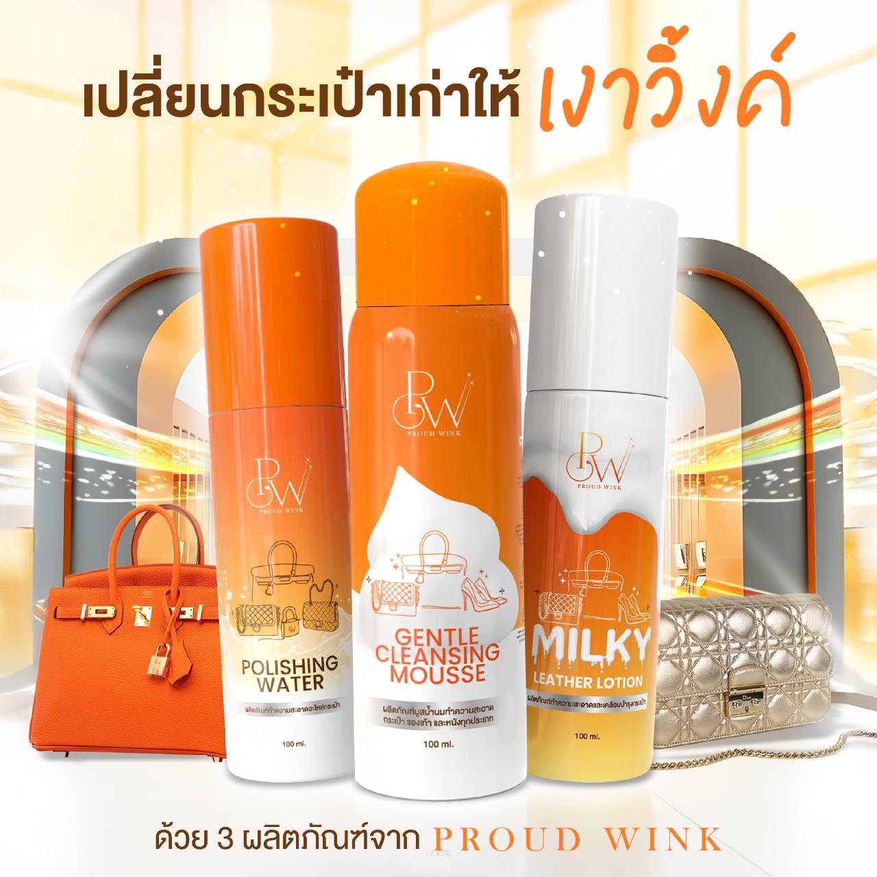 GENTLE CLEANSING MOUSSE BY PROUD WINK BRAND ผลิตภัณฑ์มูสน้ำนมทำความสะอาดกระเป๋า