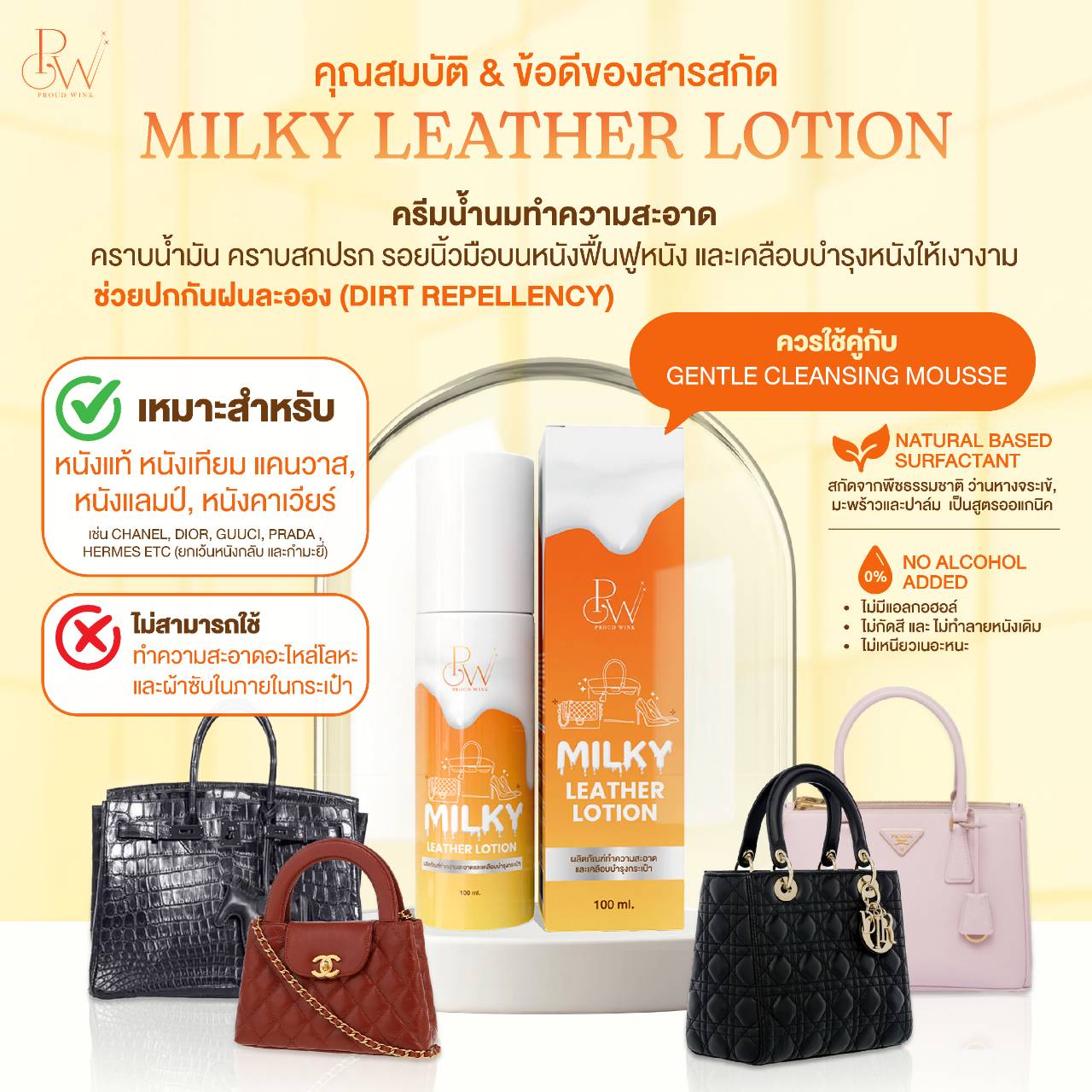 MILKY LEATHER LOTION BY PROUD WINK BRAND ผลิตภัณฑ์น้ำนมทำความสะอาดและเคลือบบำรุงกระเป๋า