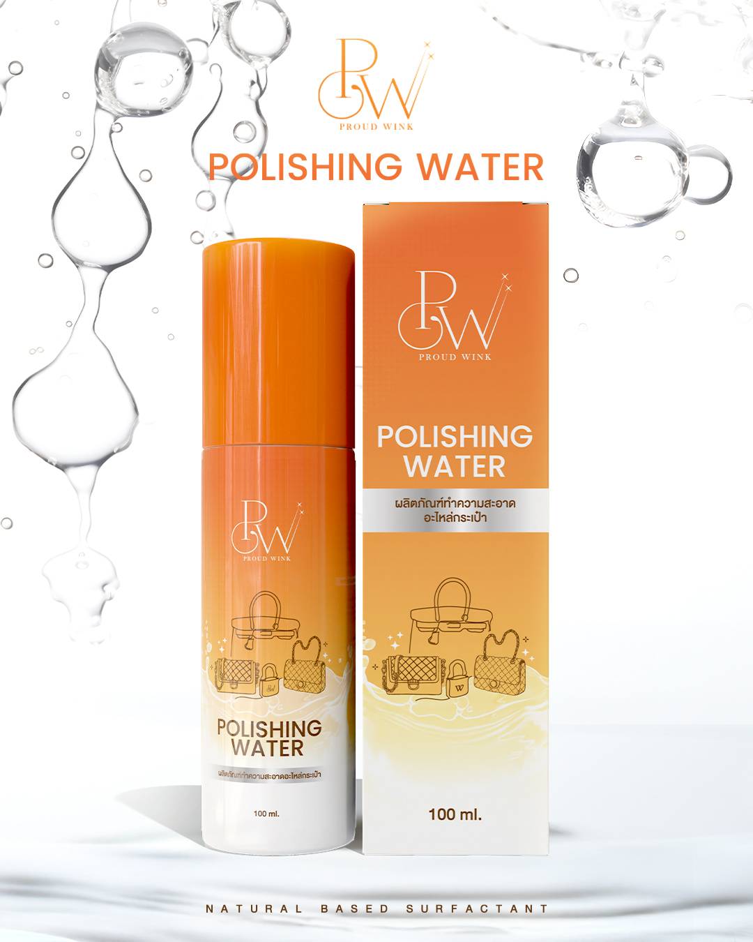 POLISHING WATER BY PROUD WINK BRAND ผลิตภัณฑ์ทำความสะอาดอะไหล่กระเป๋า และโลหะ